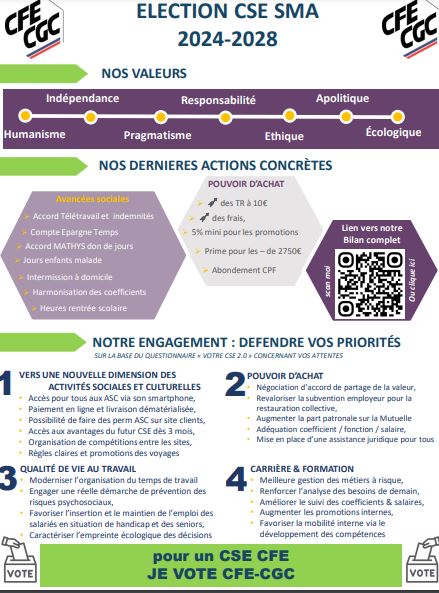DetailsBonjour, nous sommes heureux de vous présenter notre profession de foi pour le premier tour des élections au sein de SMA. Nous sommes la seule liste qui couvre toutes les régions et multi métiers/BU & Techniciens/Cadre POUR TELECHARGER LA PROFESSION DE FOI AU FORMAT PDF CLIQUE ICI Bonne lecture MON…
